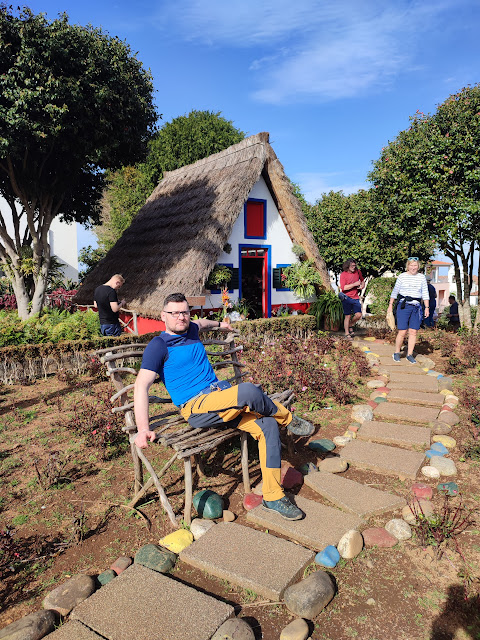 Po krótkiej przerwie zarządzamy odwrót. Mamy tego dnia jeszcze jedno miejsce do zobaczenia. Po powrocie do auta ruszamy na podbój Santany. No może podbój to zbyt wielkie słowo, ale chcemy zobaczyć te charakterystyczne trójkątne domki pokryte strzechą, które są głównym symbolem miasta, a nawet całej wyspy. Domkom tym oczywiście nie można odmówić uroku. Połączenie kilku kolorów przyciąga uwagę. Podobno tak wyglądały pierwsze domy kiedy zaludniano wyspę. Powiadano, że drewniane ściany miały chronić przed zimnem, a bielone były, by minimalizować efekty upałów. No ale jak to się ma do tego, skoro na Maderze nie ma zimy ani lata, tylko wieczna wiosna? Domki rzeczywiście urokliwe, ale spodziewaliśmy się ich większej ilości.